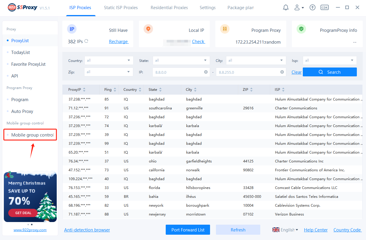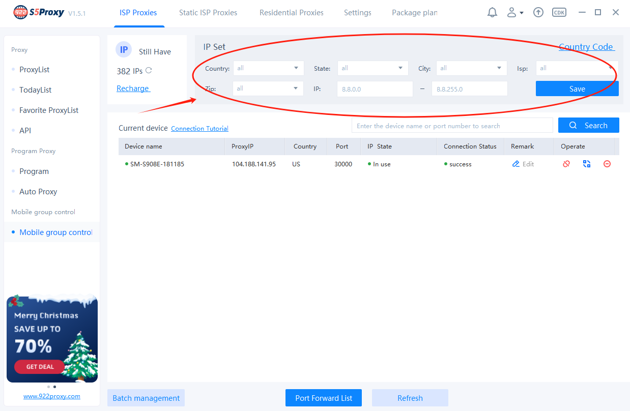 3. If you need to connect a proxy for mobile devices, you only need to filter the proxy according to country/state/city and other conditions in the IP set area, and click Save.