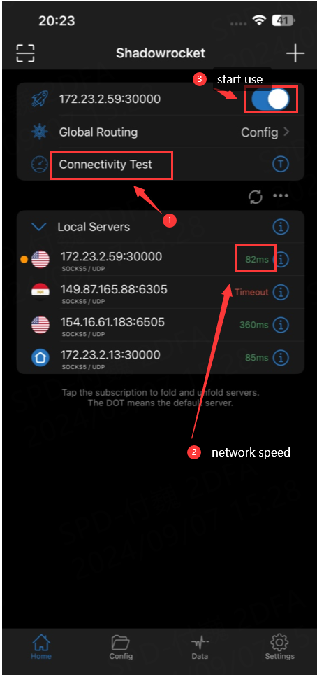 3. Click [Connectivity Test] to check whether the connection is connected; when the network speed appears, it means the connection is normal; click "Start Using".