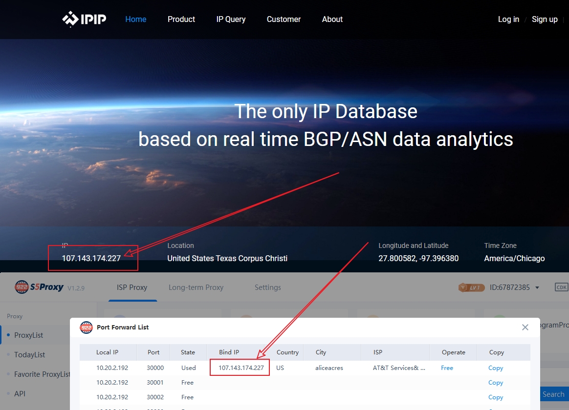 3. In the 922s5 software, extract the IP address of the target region, copy the Local IP address and Port, and paste them in the corresponding positions; Then click "Check Proxy" to check the IP status; Click Create Profile to complete the configuration.