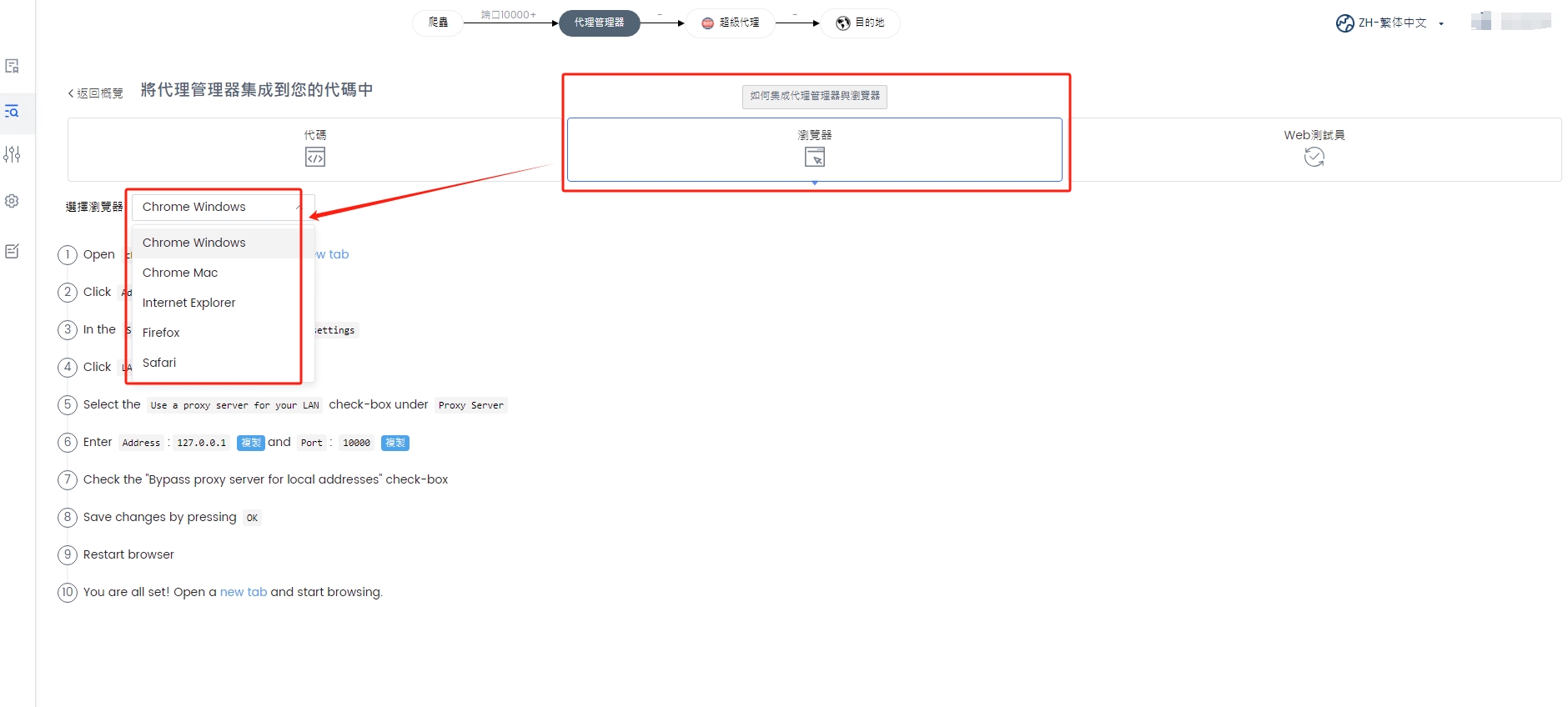 2.選擇「瀏覽器」,支持不同的瀏覽器供您使用,如谷歌、火狐等。