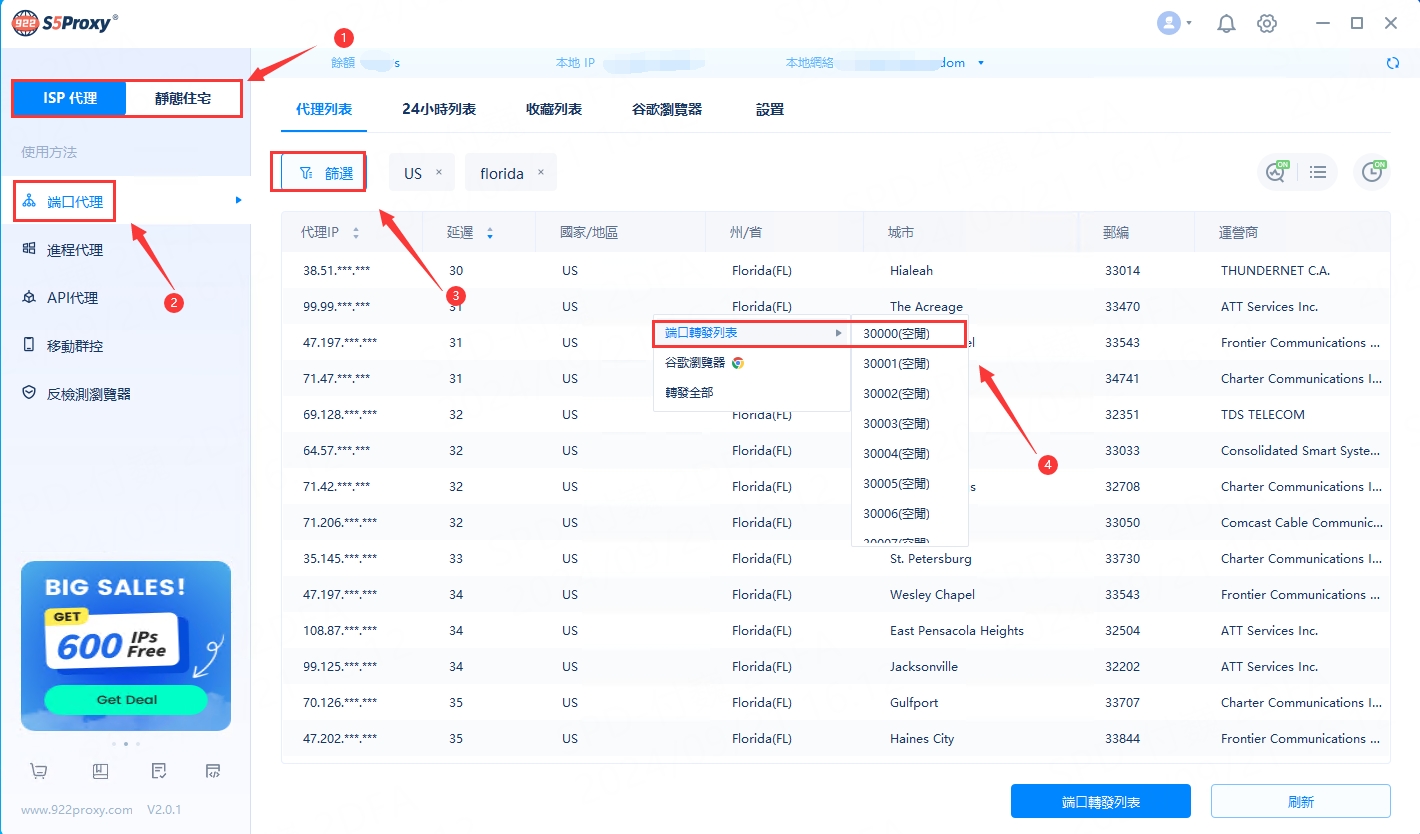 2. 選擇購買的「套餐類型」 ,篩選並提取ip地址到 ”端口“;