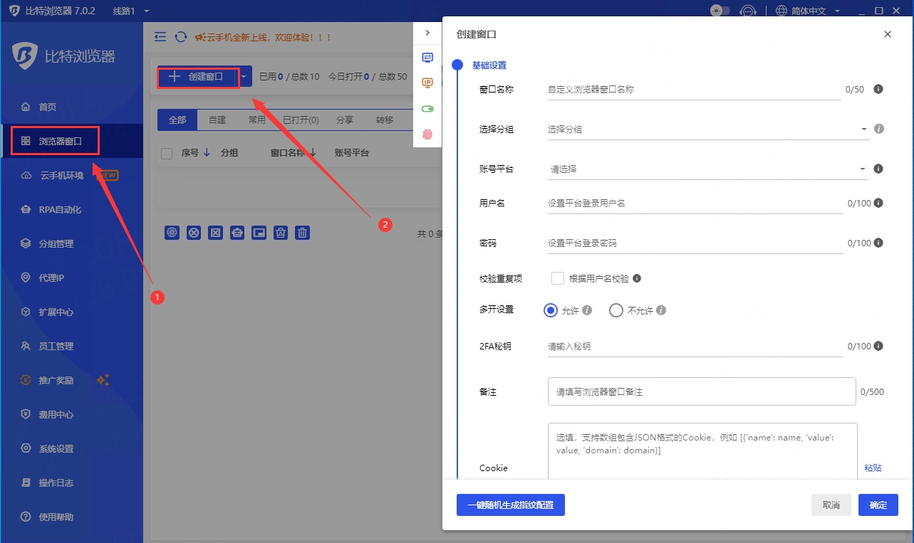 ● 新用戶可獲得1個免費的指紋瀏覽器使用環境