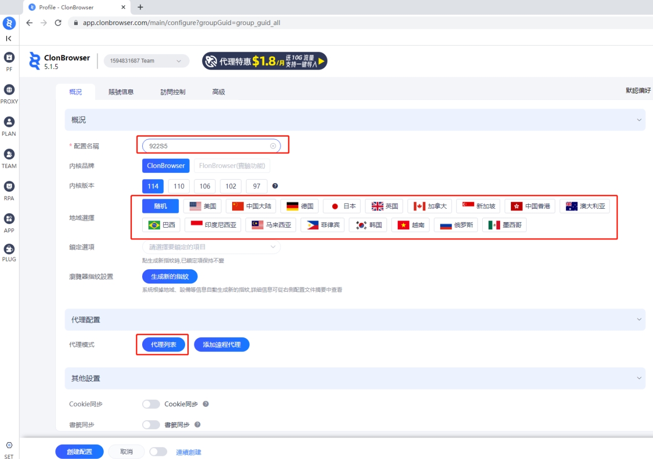 4.然後輸入名稱,選擇國家,點擊代理列表
