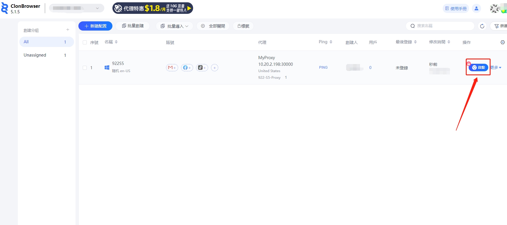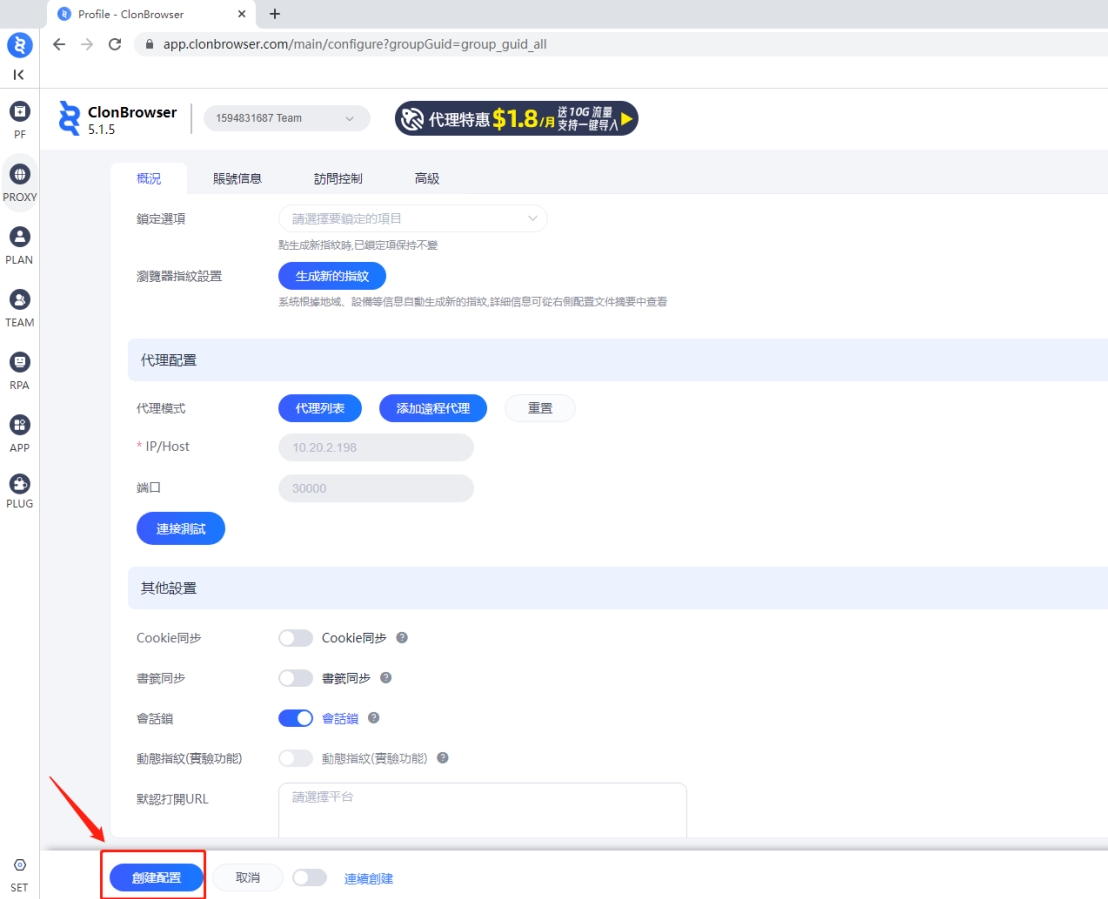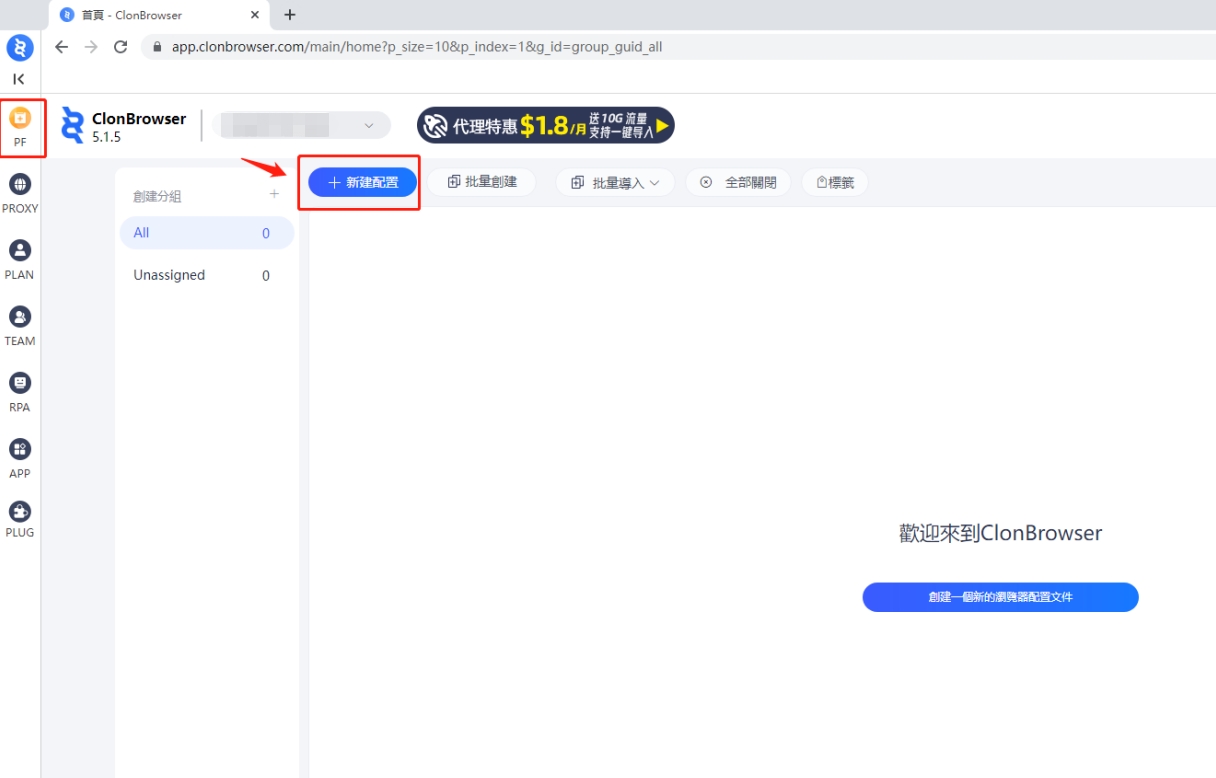 3.打開ClonBrowser,點擊PF页面的“新建配寘”按鈕
