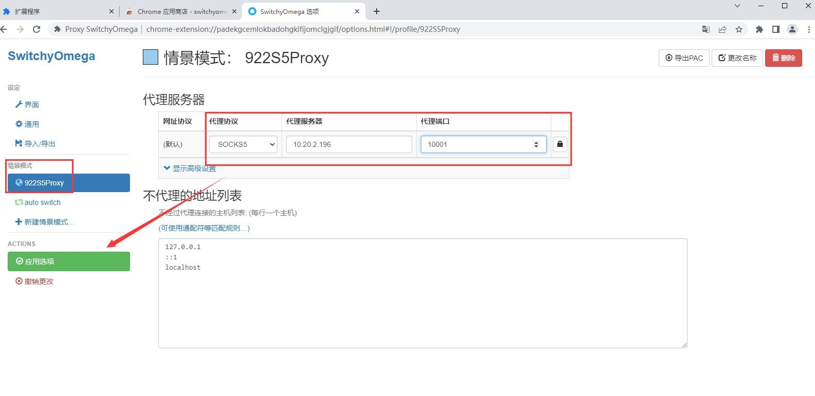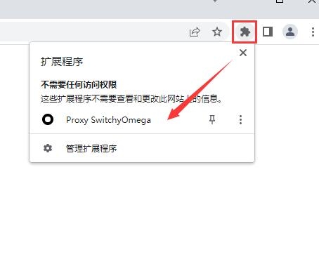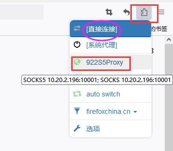 4. 點擊Chrome右上角的擴展圖標,打開SwitchyOmega。使用時請選擇922S5Proxy配置文件,不使用時請選擇直連。