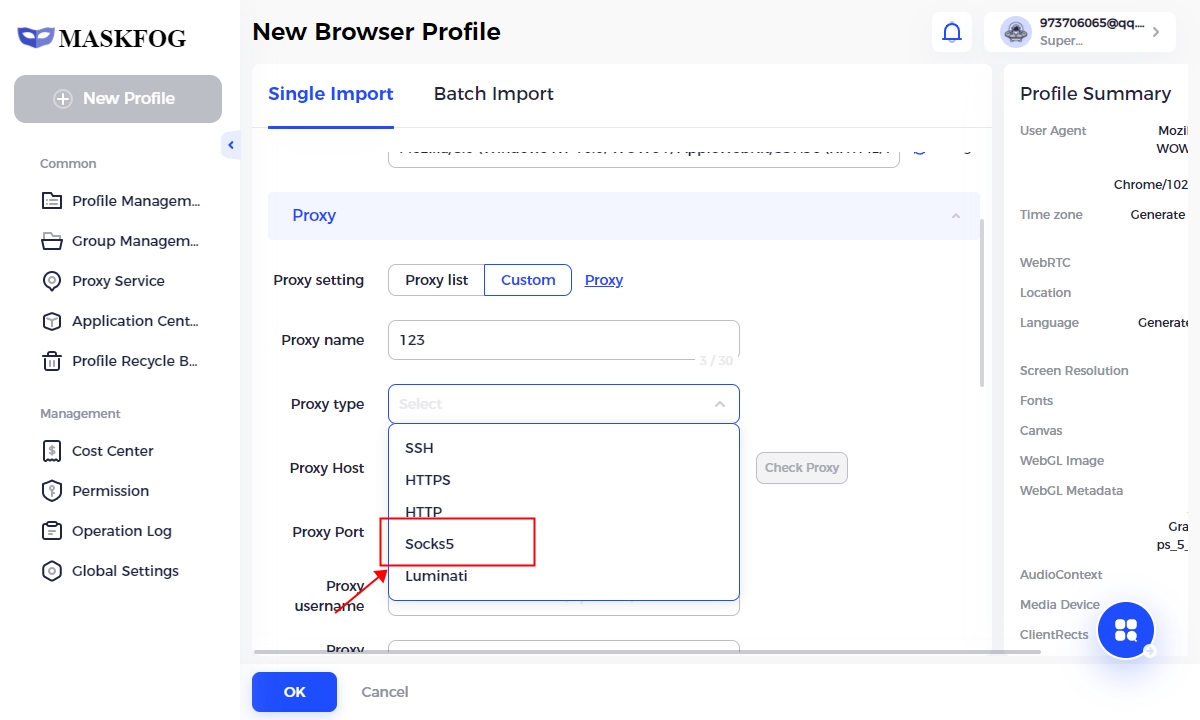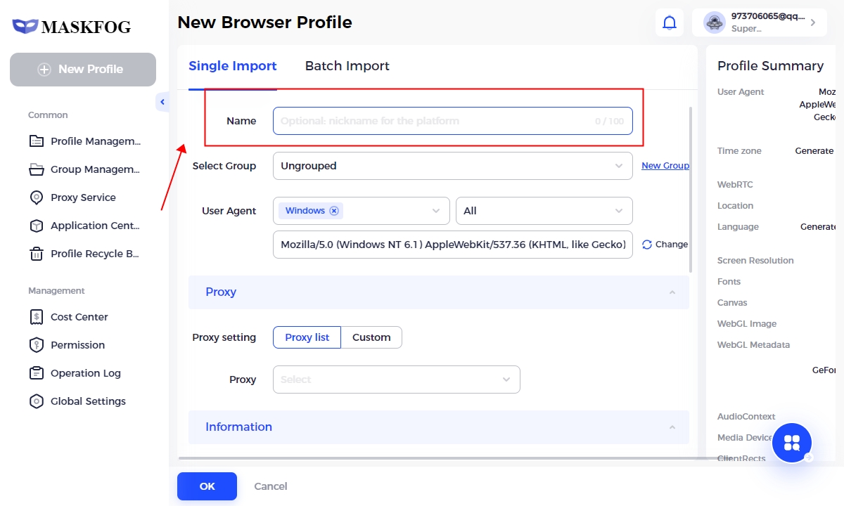 1.打開MaskFog Browser,點擊“New Profile”新建一個瀏覽器。