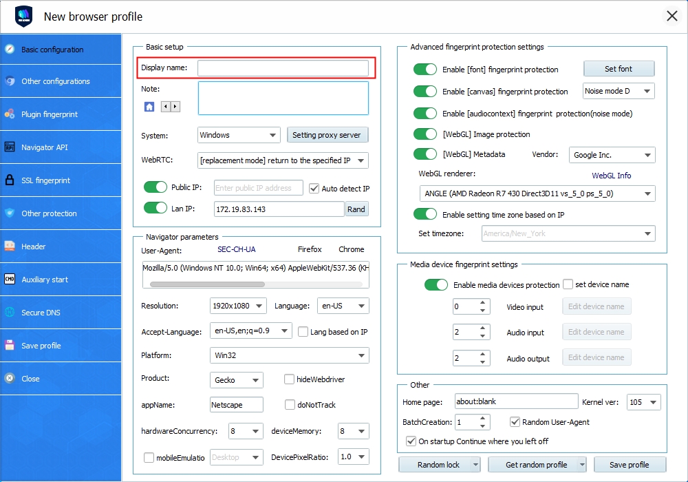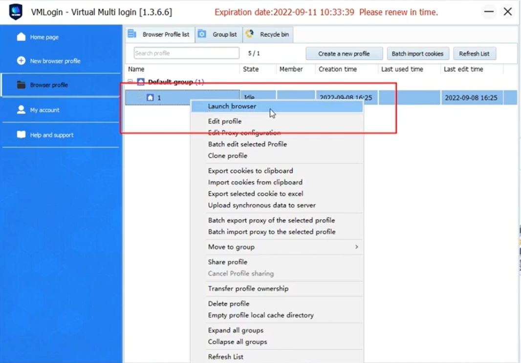 1.在VMLogin上單擊“新建瀏覽器配置文件”