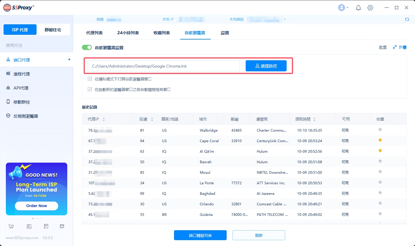 為了方便用戶更快速地為Google瀏覽器設定代理,我們針對Google瀏覽器開發了新的代理方式。