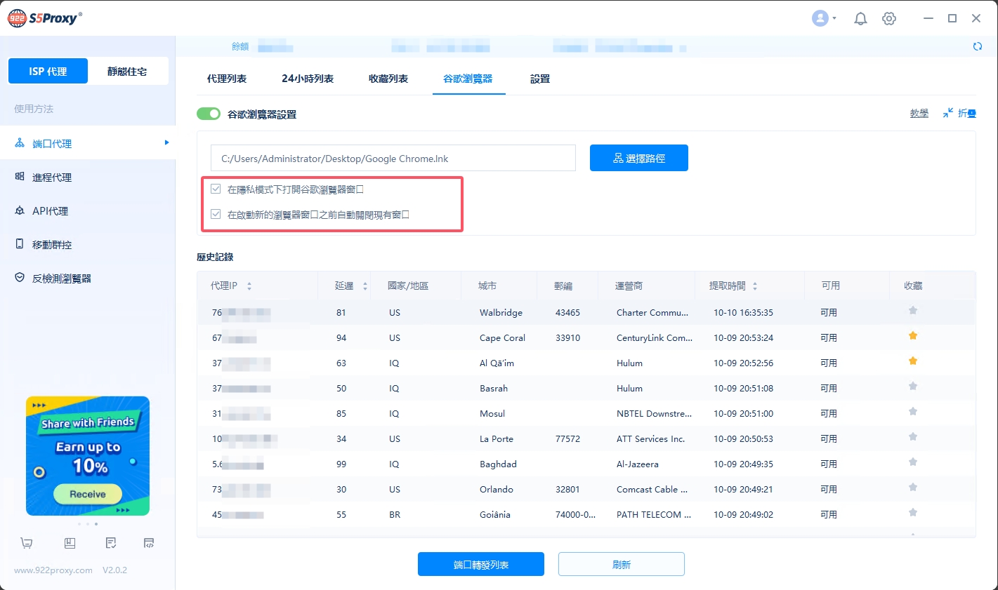 1.以隱私模式下打開瀏覽器窗口:如果勾選了此功能,在您進行代理連接時都會以無痕瀏覽器模式開啟Google瀏覽器新視窗。
