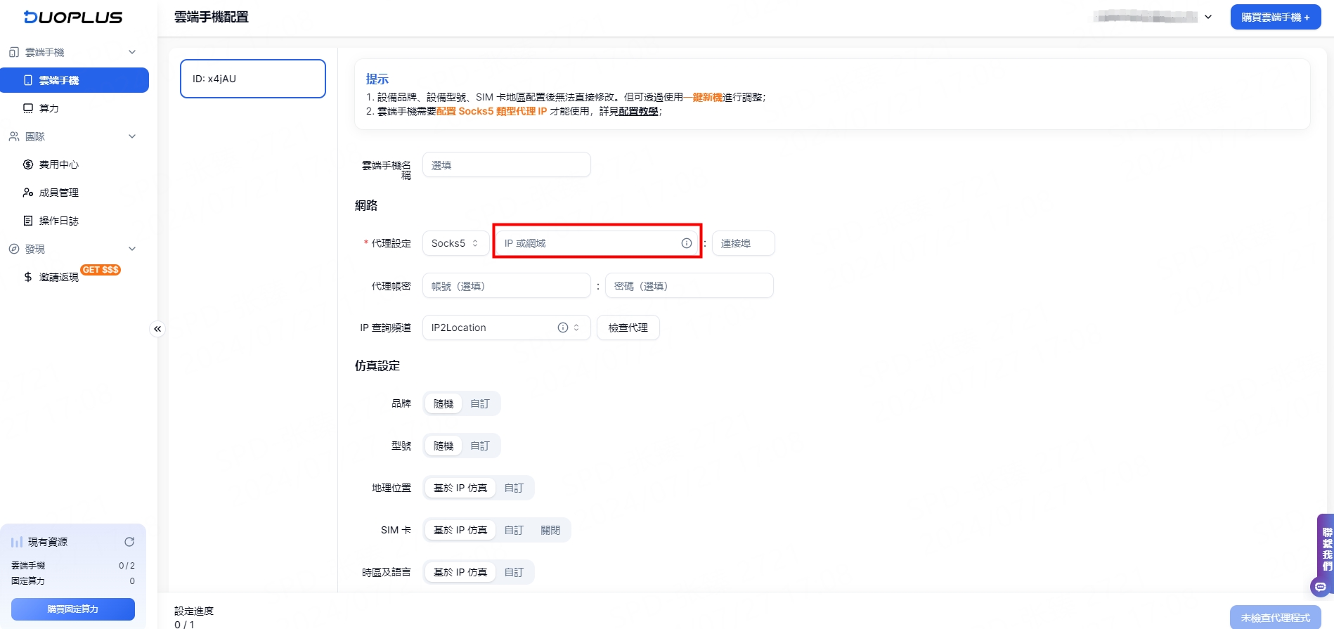 (注:目前DuoPlus雲手機只支持Socks5類型的代理配寘,並支持全球50多個國家地區的代理)