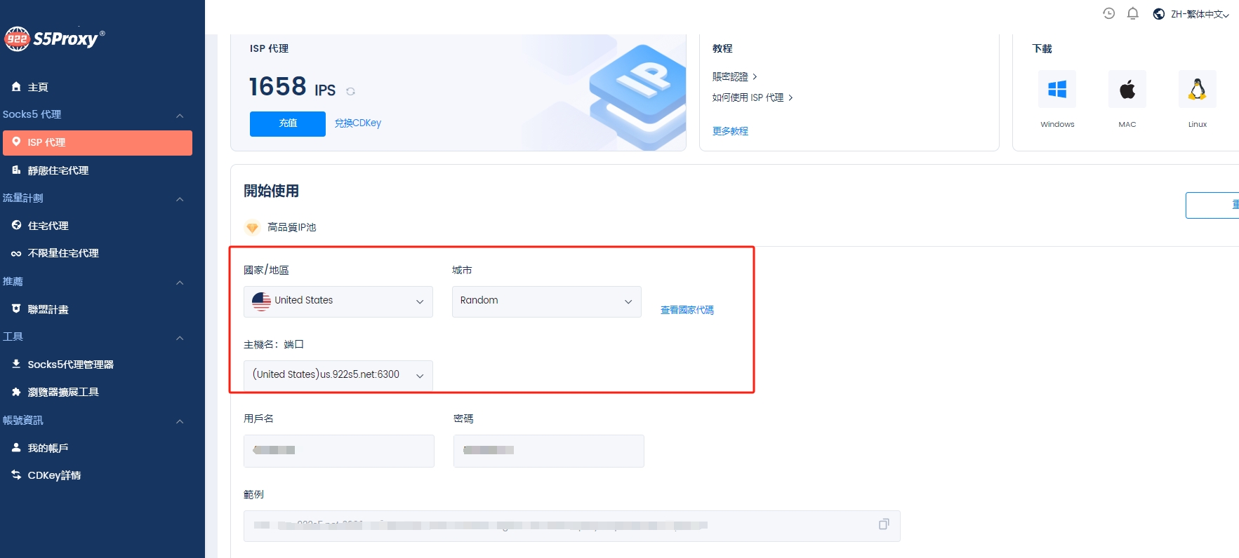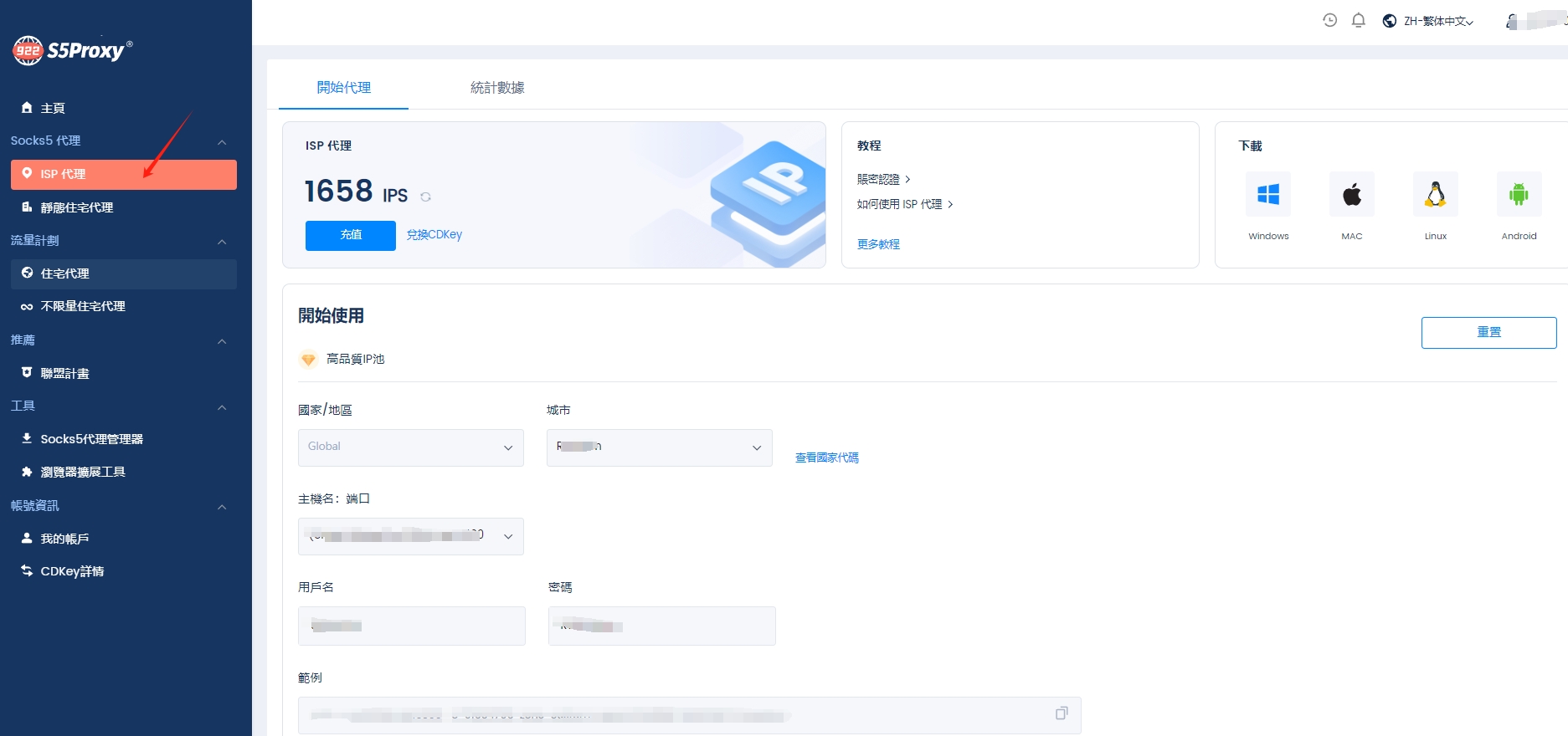1)購買完代理後進入個人中心儀錶板,進入ISP代理頁面