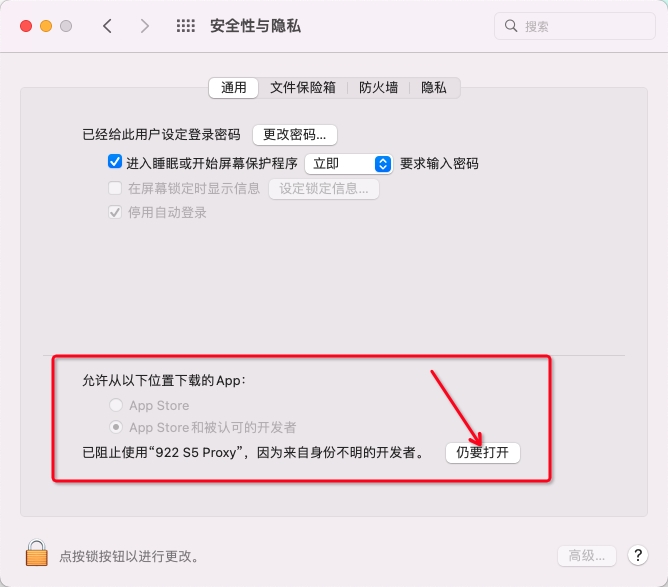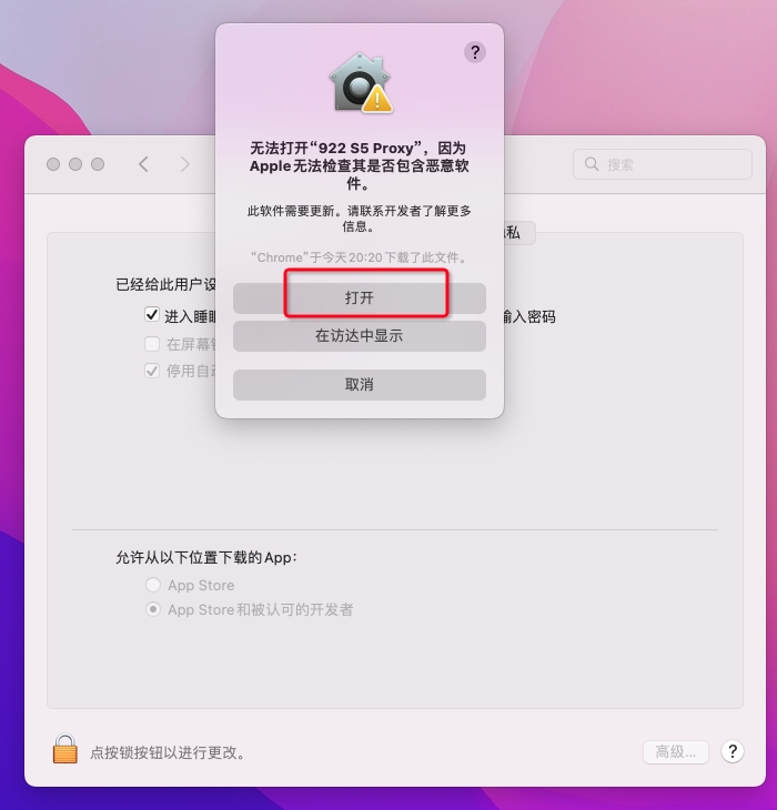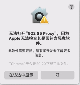 下載922 S5 Mac版客戶端時,如果遇到此問題(如圖),可以採取以下步驟進行設置。