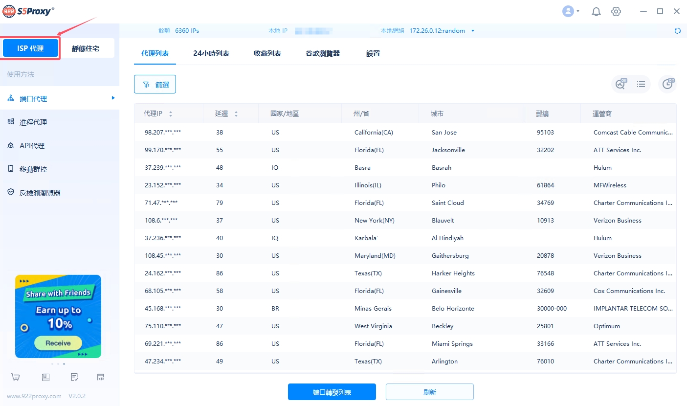 點擊“端口轉發列表”按鈕,查看詳細的代理參數。 點擊“複製”按鈕,即可一鍵複製本地IP地址和端口。 要釋放端口,請點擊“釋放”按鈕。