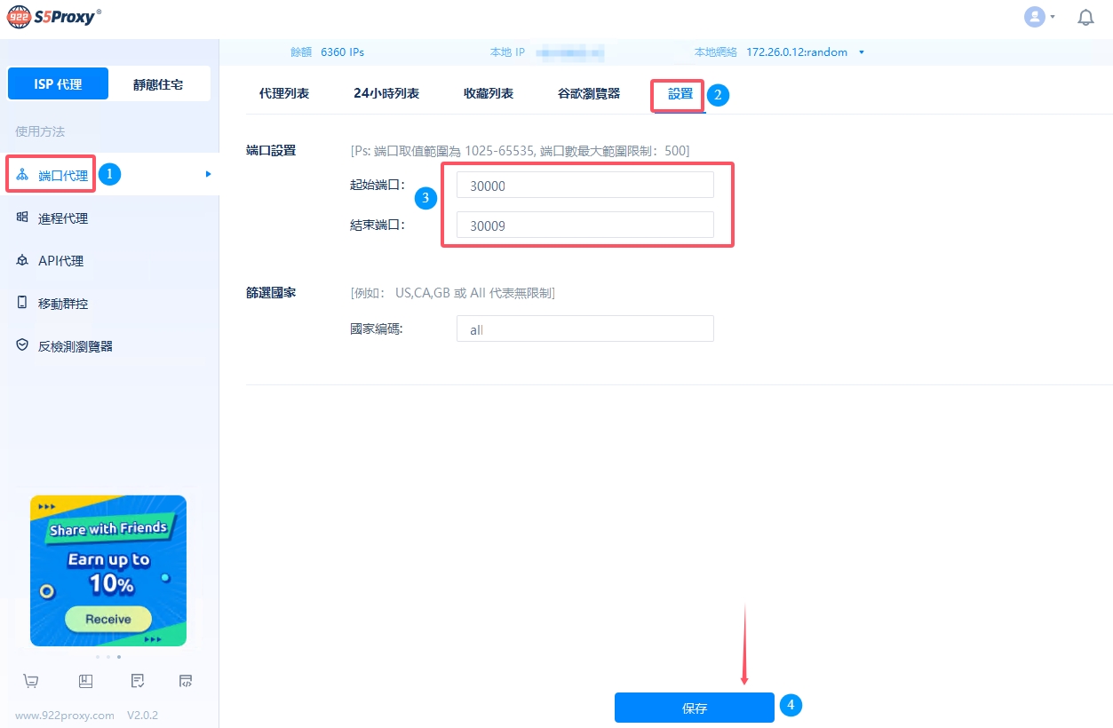 點擊“設置”,填寫所需的端口範圍,每次可以設定的最大端口數為500;