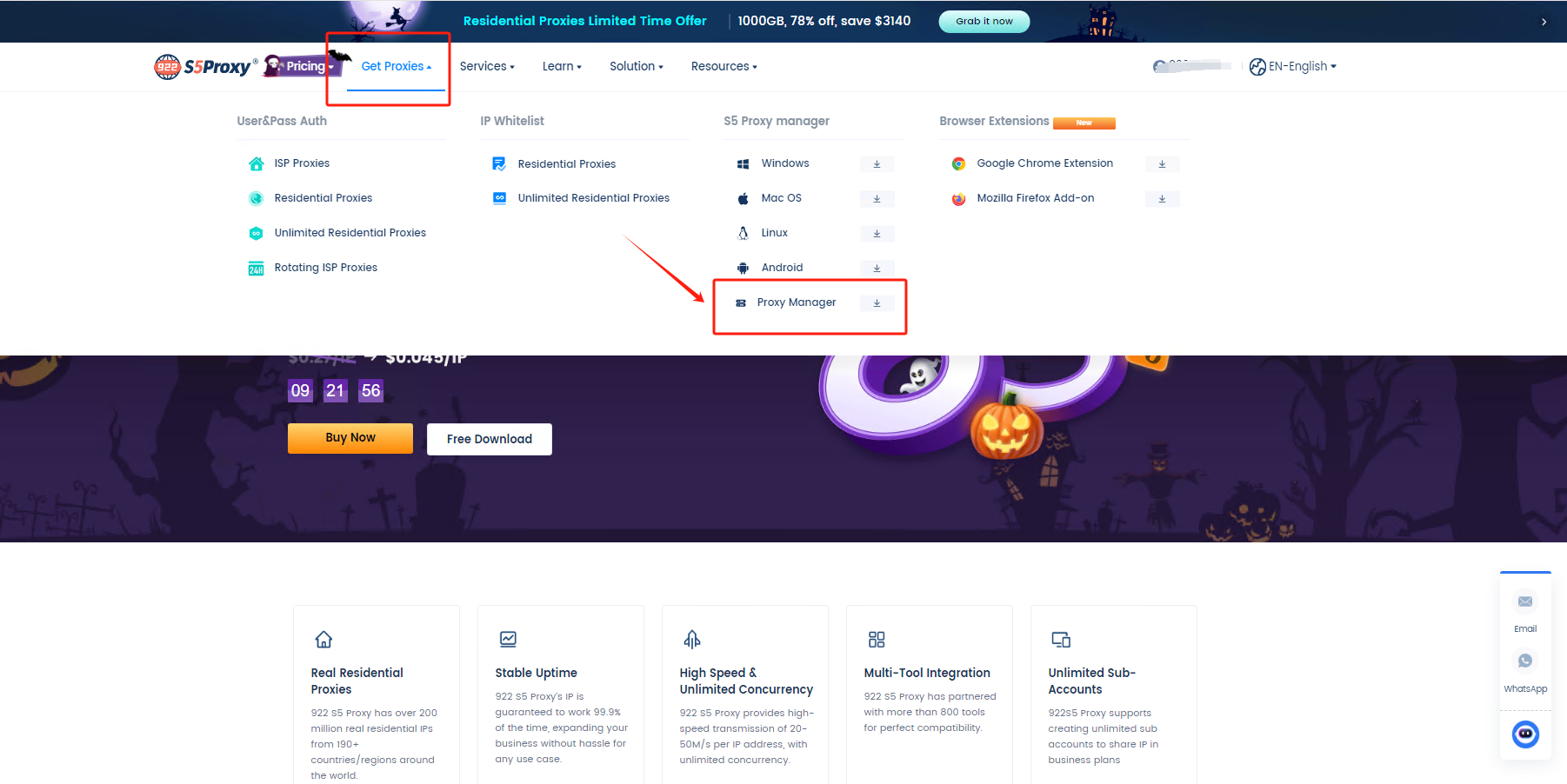 1) Enter the official website, find the navigation bar - Proxy Settings - drop-down menu, click Proxy Manager, and then click Download