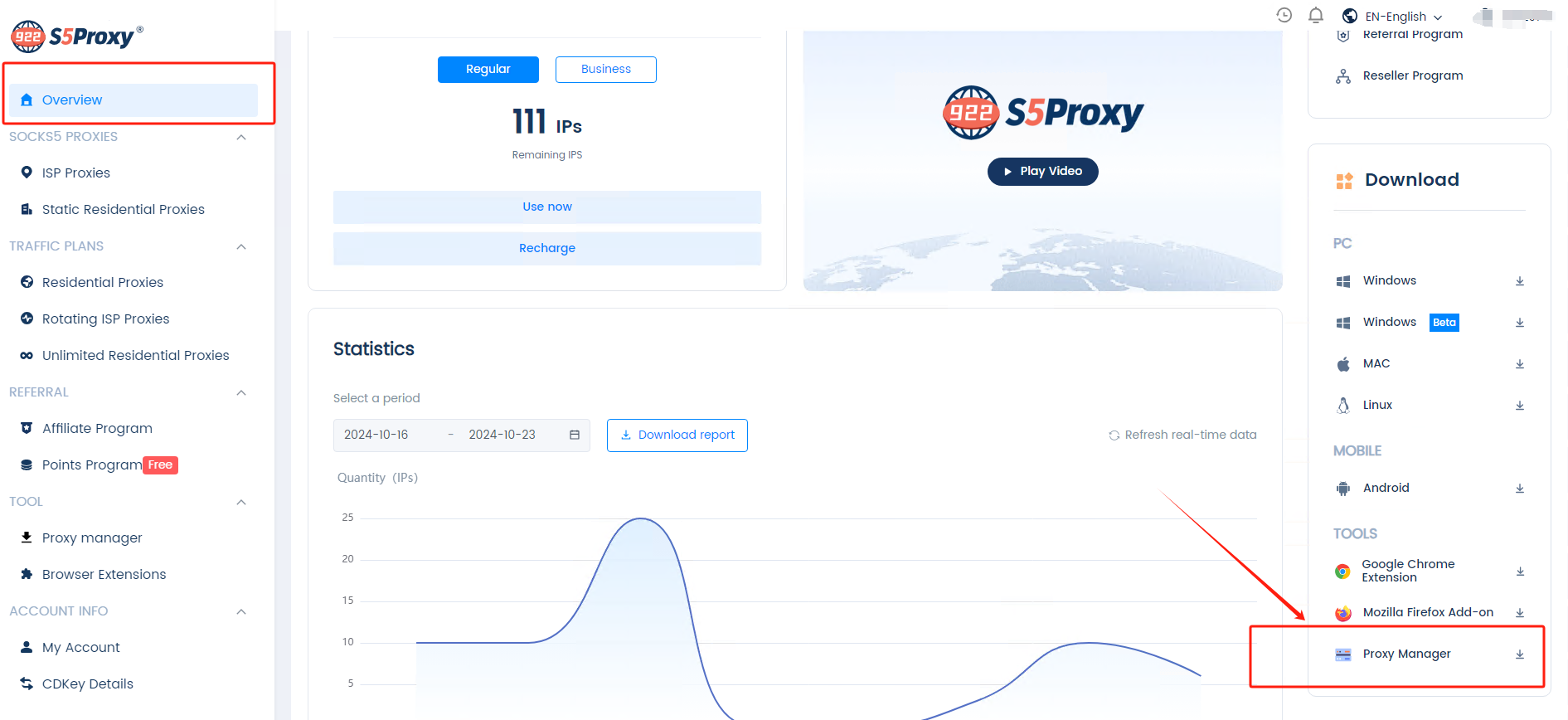 2) Enter the official website - Personal Center - Overview Dashboard, click to download Agent Manager