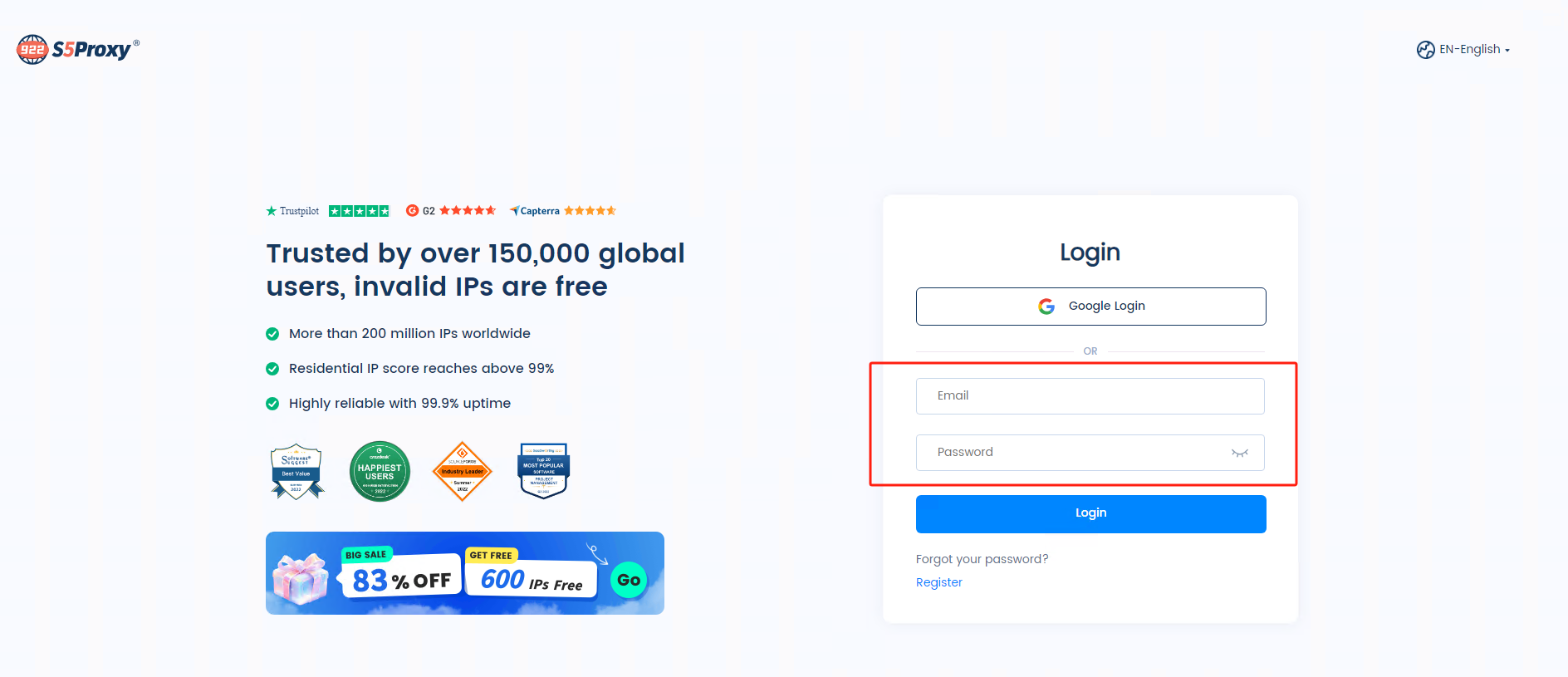 After the download is completed and installed, double-click the desktop icon. After a moment, the login page will automatically open on the web page. Enter your 922S5Proxy account and password, and click to log in.