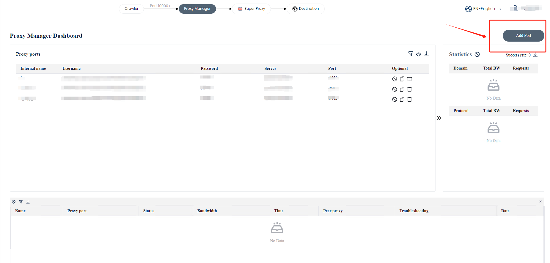 After logging in, enter the proxy manager interface and start adding proxies for use.