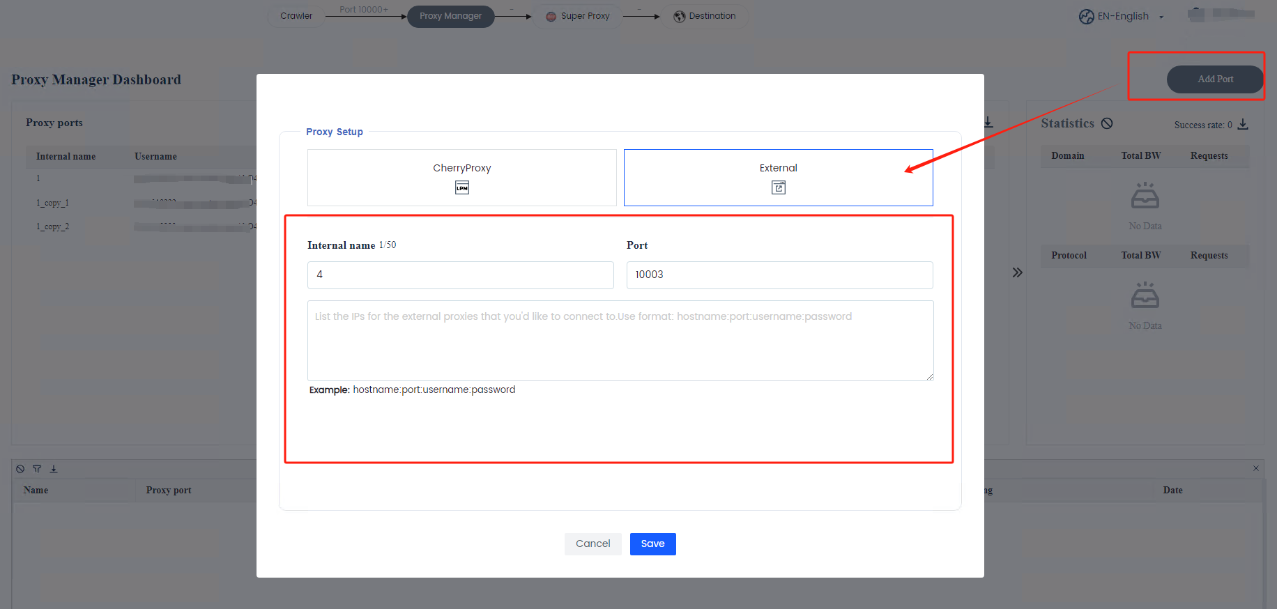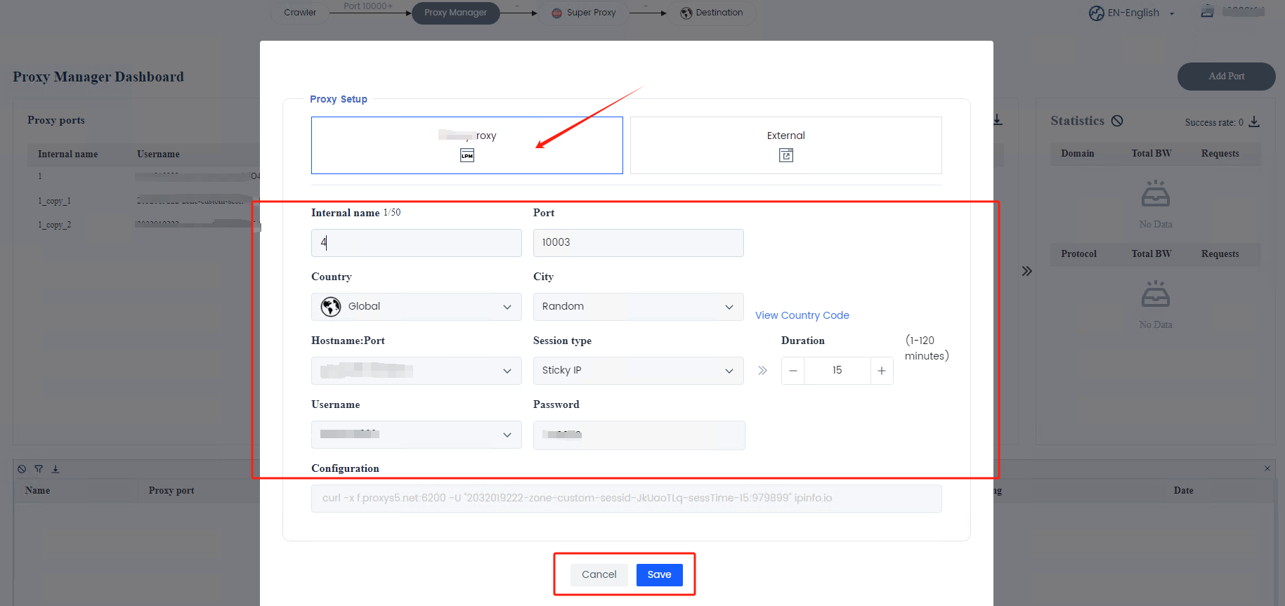 If you want to use a proxy provided by another proxy provider, you can paste the generated proxy command here and click Save to use it.