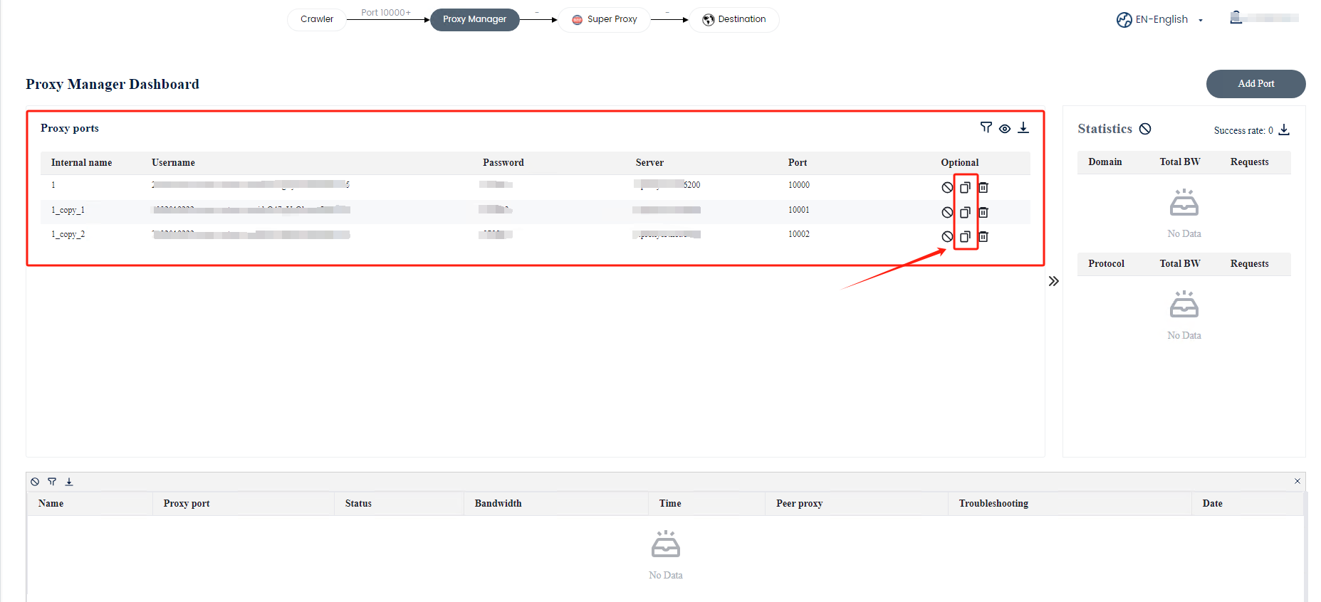 ③Click the "Copy" button to generate a new proxy with a different port and the same other information.