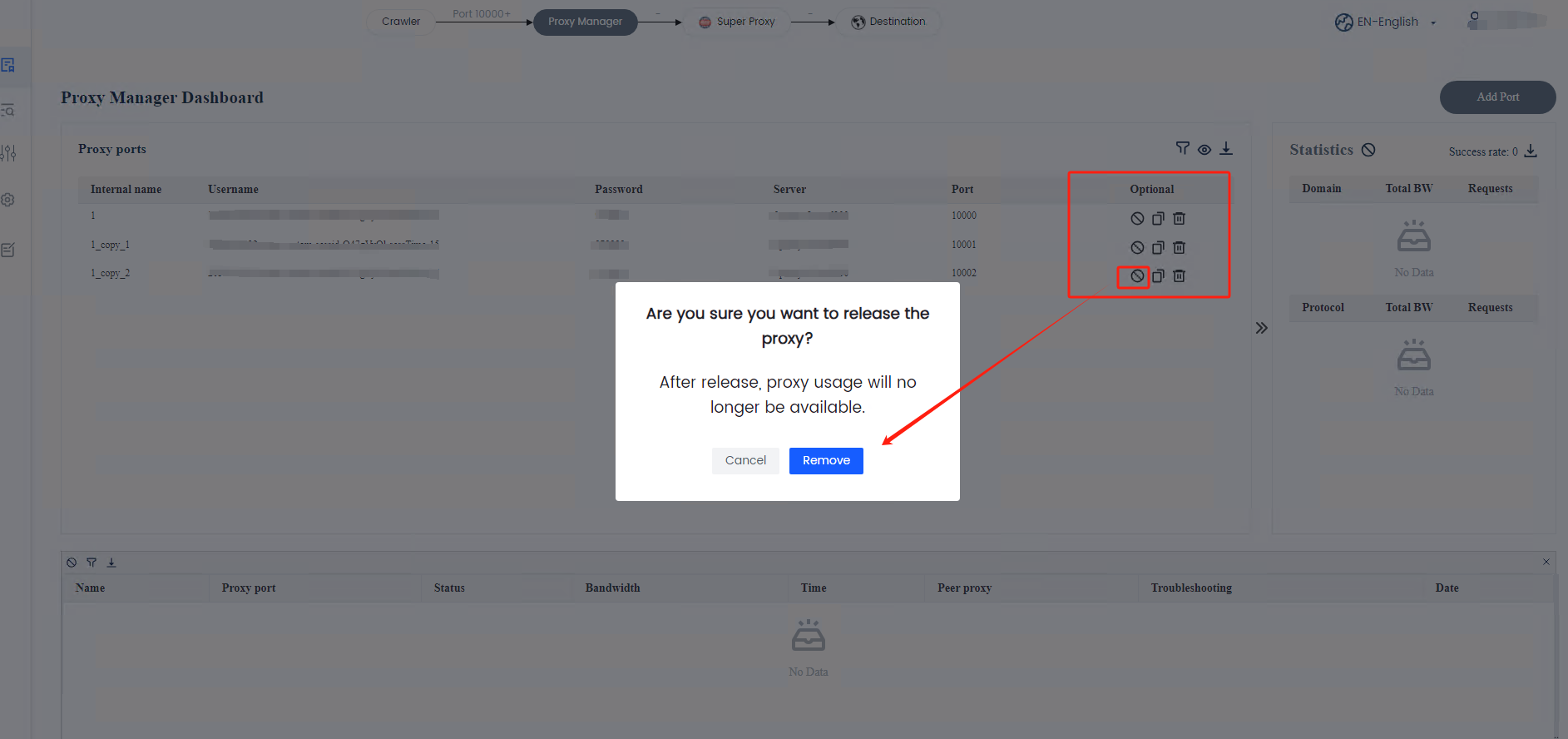 ④Click here to release the port. After releasing, the port will not be available. If you want to continue using it, you need to click again to open the port.