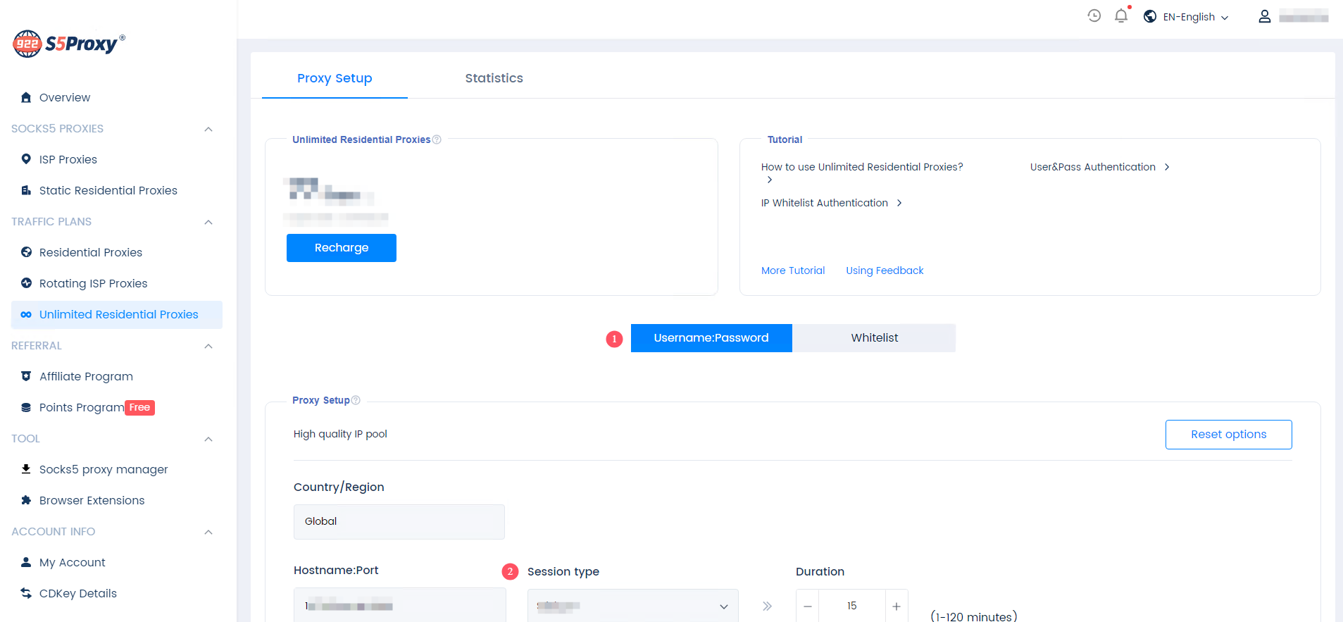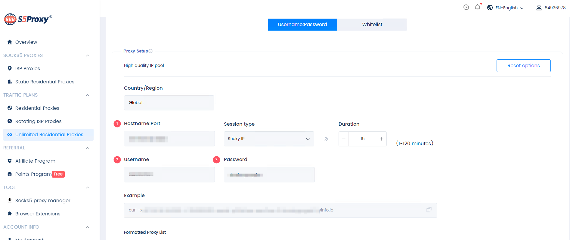 Step 2: Use Unlimited Residential Proxies by User&Pass Auth or IP Whitelist.