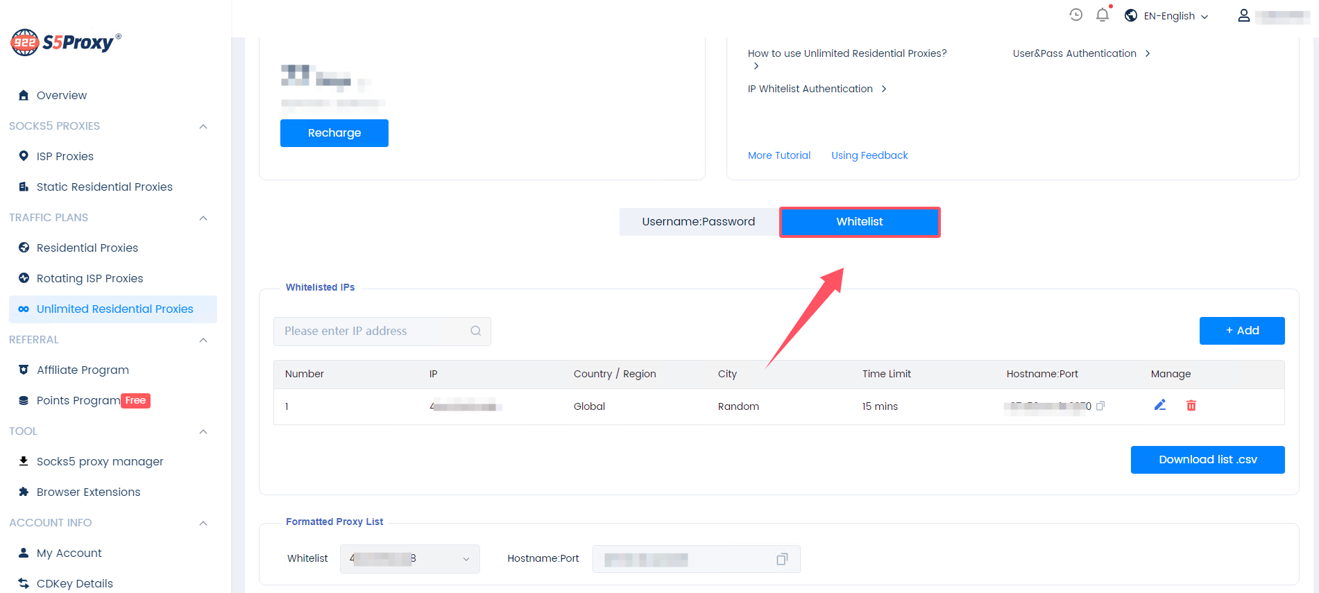 Method ② - IP Whitelist: You can use unlimited residential proxies within the validity period by setting IP Whitelist.