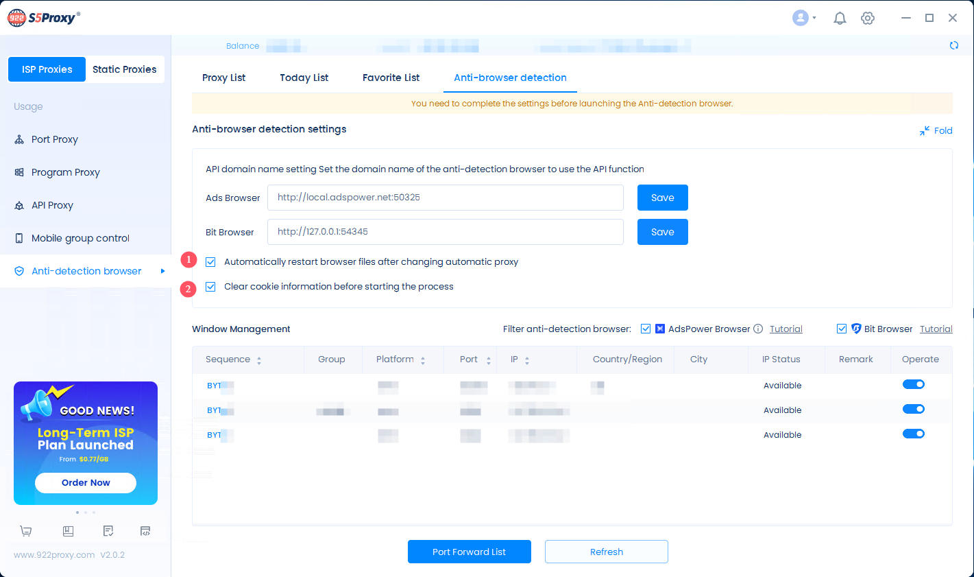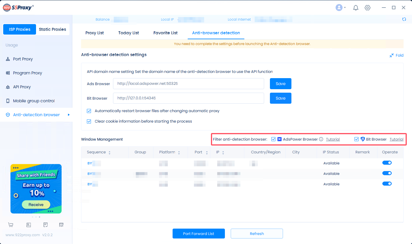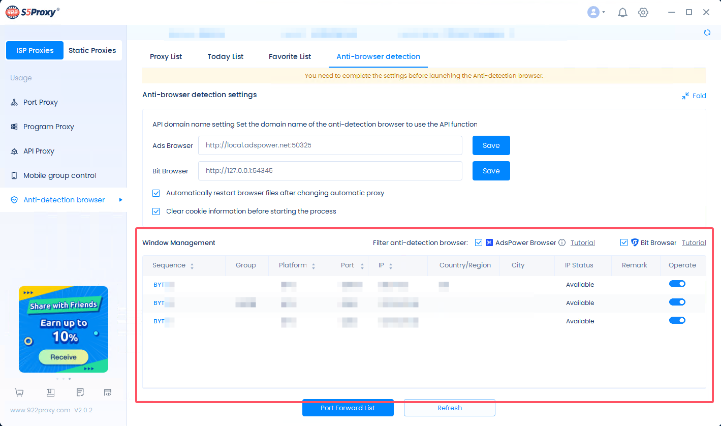 With the enrichment and improvement of the integration functions between 922 S5 Proxy and Bit Browser, you will be able to seamlessly enable the proxy between the two applications.