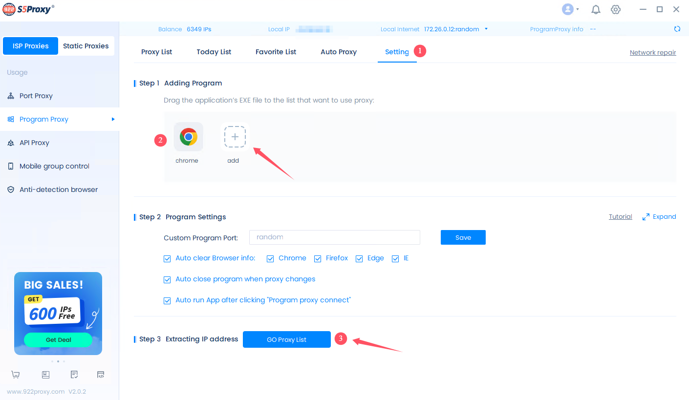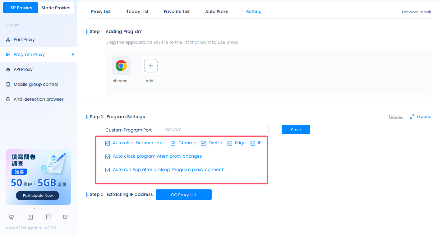 Download and install the 922S5 proxy client, open it and click "Program Proxy"