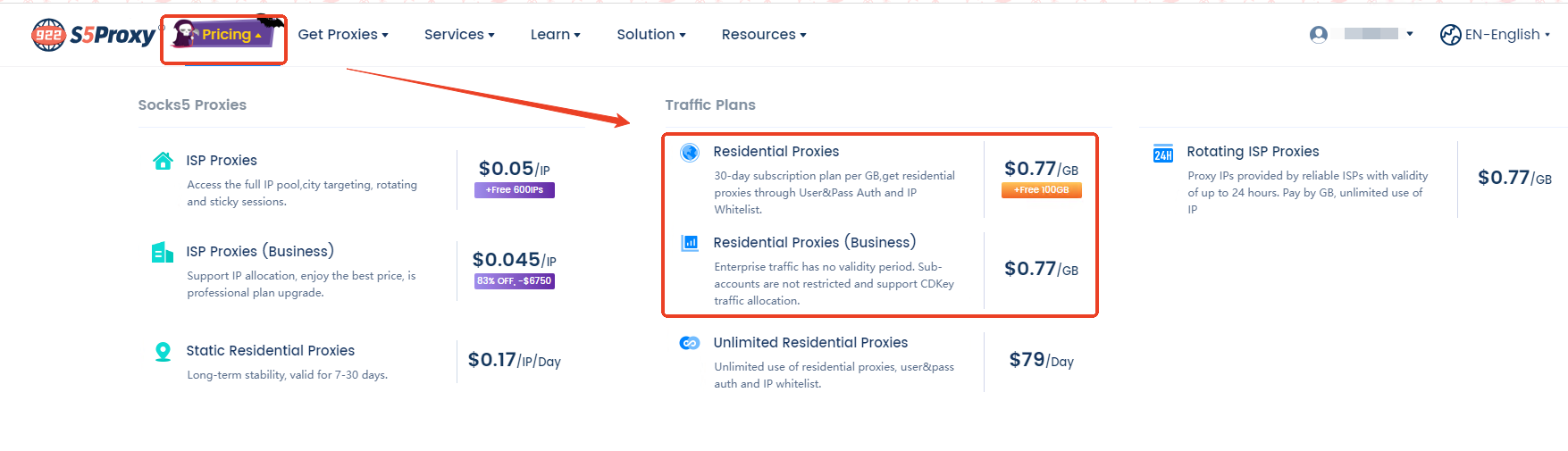 Applicable plans: ISP proxy, residential proxy (traffic), static residential proxy.
