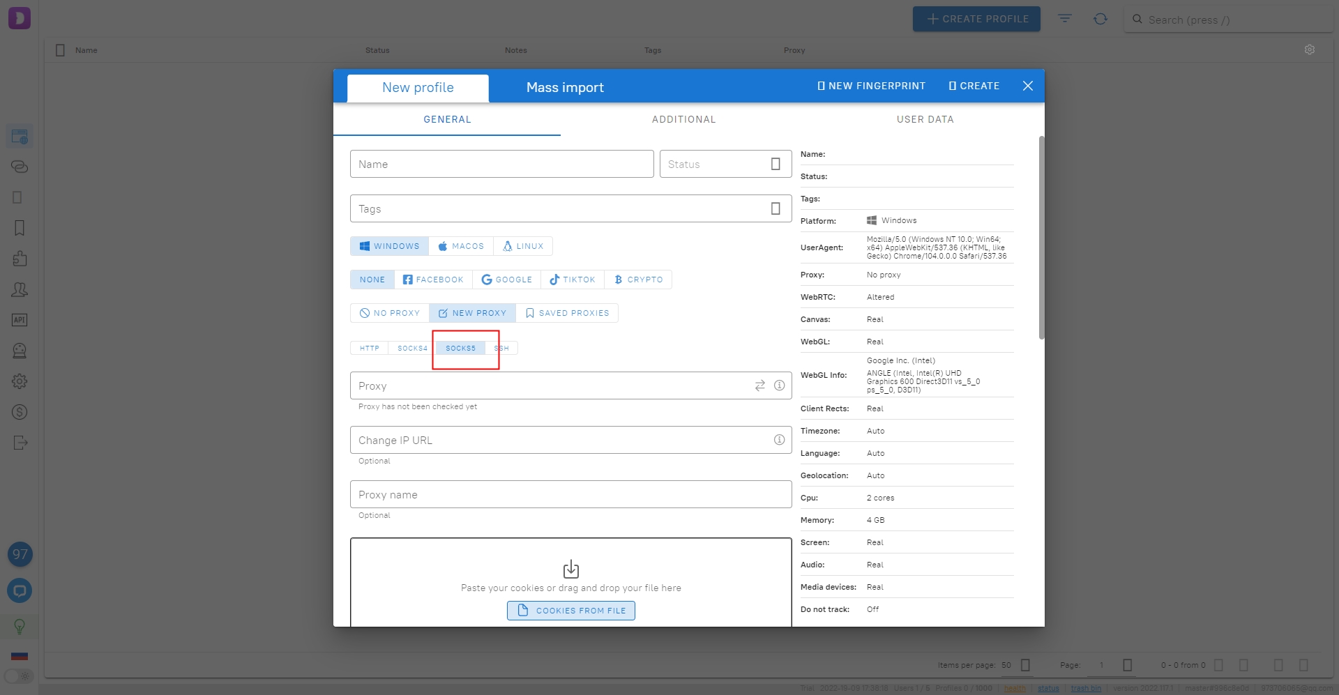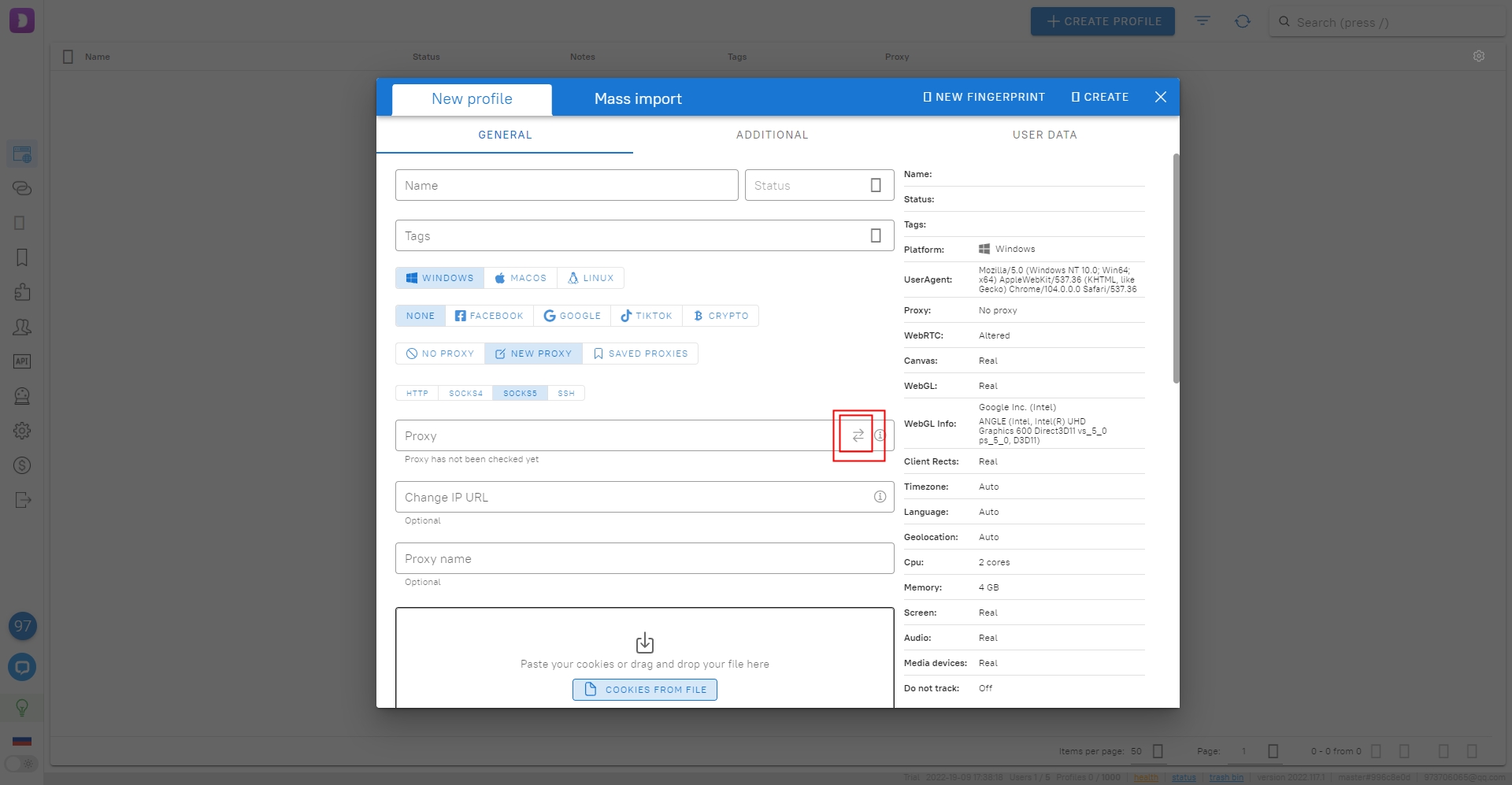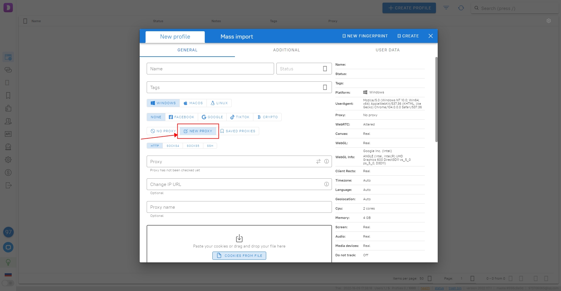 1. Open Dolphin Anty and Click CREATE PROFILE