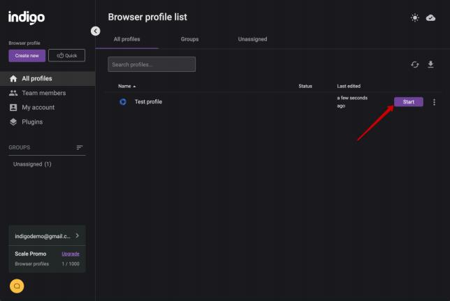 Click Start and open your profile. You can see the main information about your browser profile on the start page (public IP, geolocation, OS, user-agent, etc).