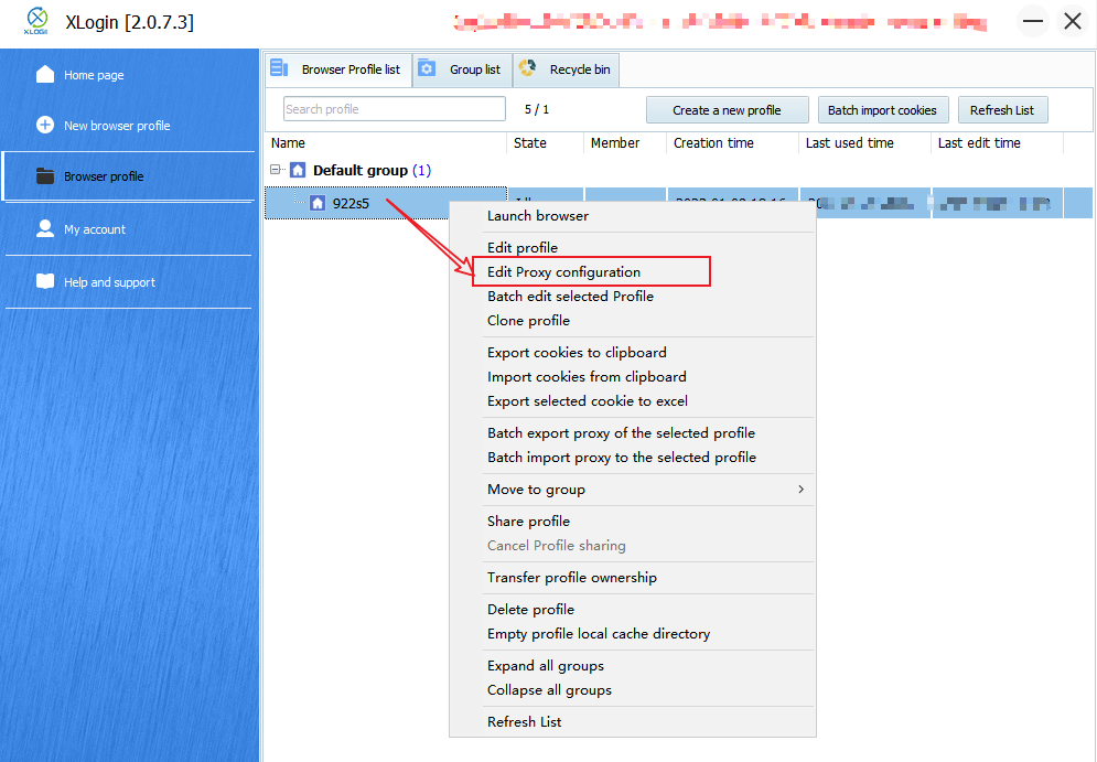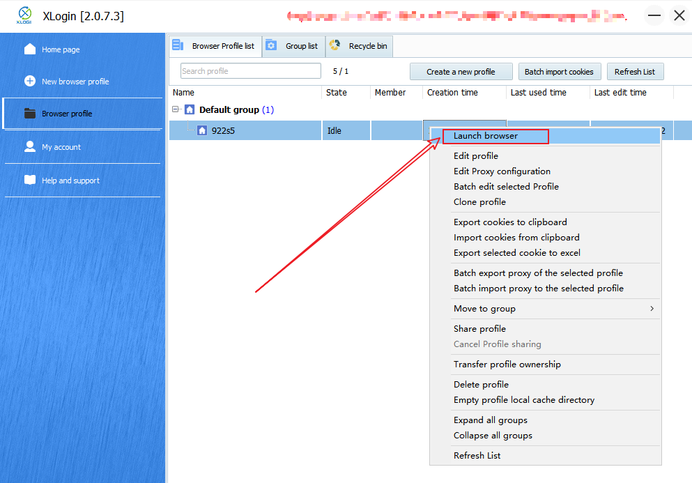 ④Right-click "launch browser" to launch the browser. The browser environment has been used as the IP address extracted by 922s5.